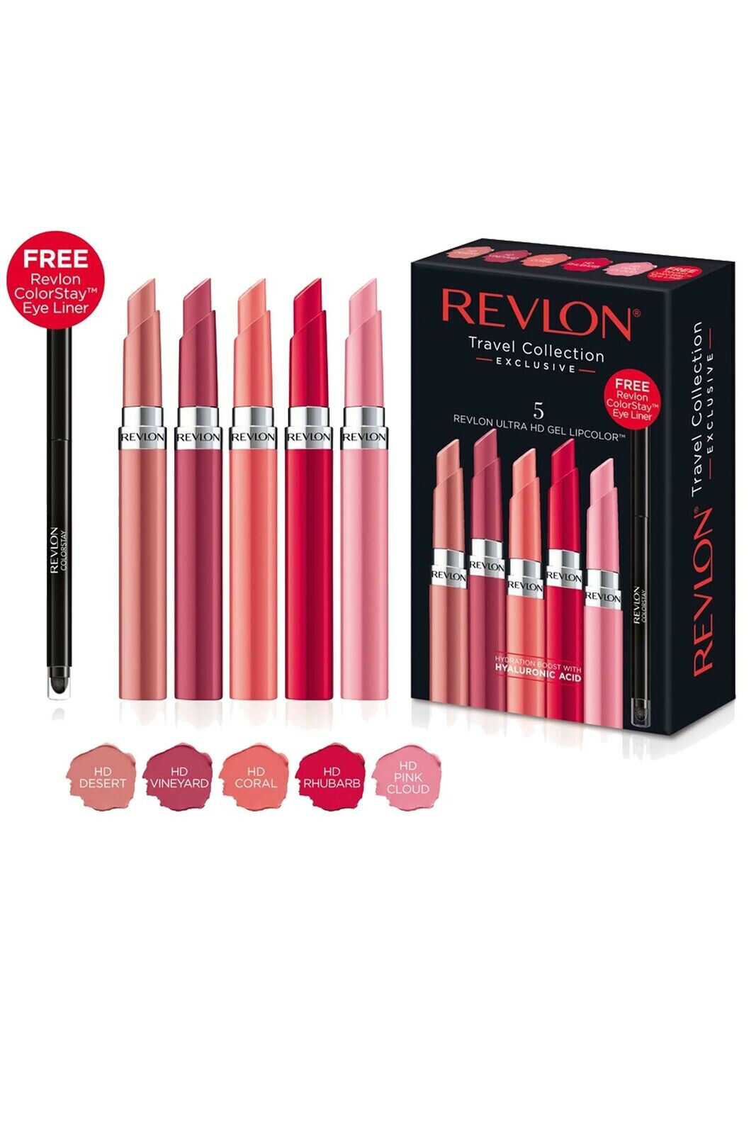 Revlon Ultra HD Gel Lip Colors Set of 5 Desert Pink Coral Rhubarb Vineyard